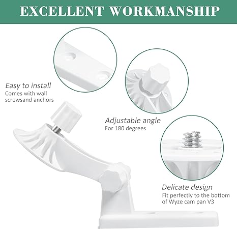 • SPECIFICALLY DESIGNED FOR WYZE CAM PAN V3 WITH BROAD COMPATIBILITY – Crafted exclusively for the Wyze Cam Pan V3, this mount seamlessly fits other Wyze models like the Wyze Cam V3 and Wyze Outdoor. It also adapts to a variety of cameras, especially those with a standard 1/4 threaded hole such as Arlo and CCTV Cameras.