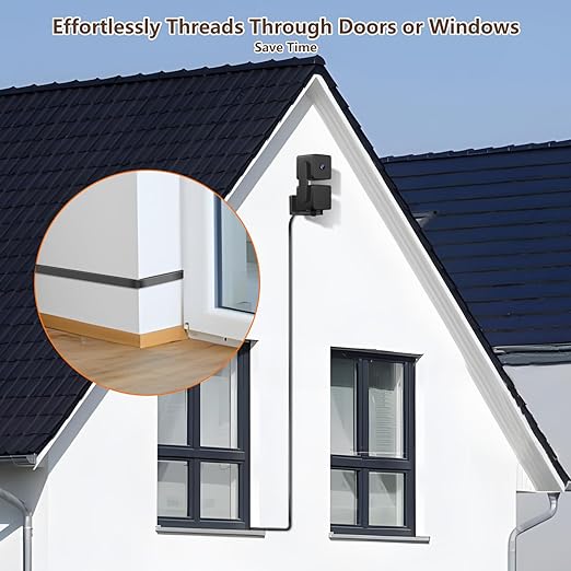 • 【25FT/7.5M Flat Cable】 25ft/7.5m Extra-Long Cable for flexible camera placement wherever you prefer. Only 2mm thickness, Flat cable can easily fit through tight spaces like doors and windows, prevent tangling and save space.