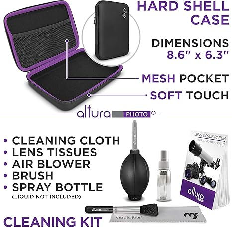 - CAMERA SENSOR CLEANING KIT INCLUDES: 6 Altura Photo 16mm Dry Sensor Swab + Altura Photo All-Natural 2oz. liquid lens cleaner + Hard Carrying Case + Lens Cleaning Pen + Lens Brush + Air Camera Blower + 50 Sheet Tissue Lens Paper + 1 Large and Original MagicFiber Microfiber camera lens cleaning cloth.