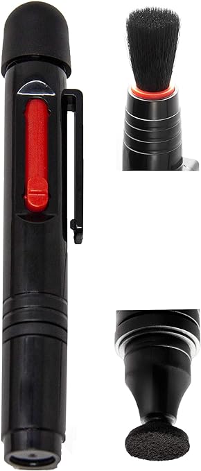 - Soft brush easily swipes off loose dust from the optical surface. The protective cap and retractable design keep the brush clean.