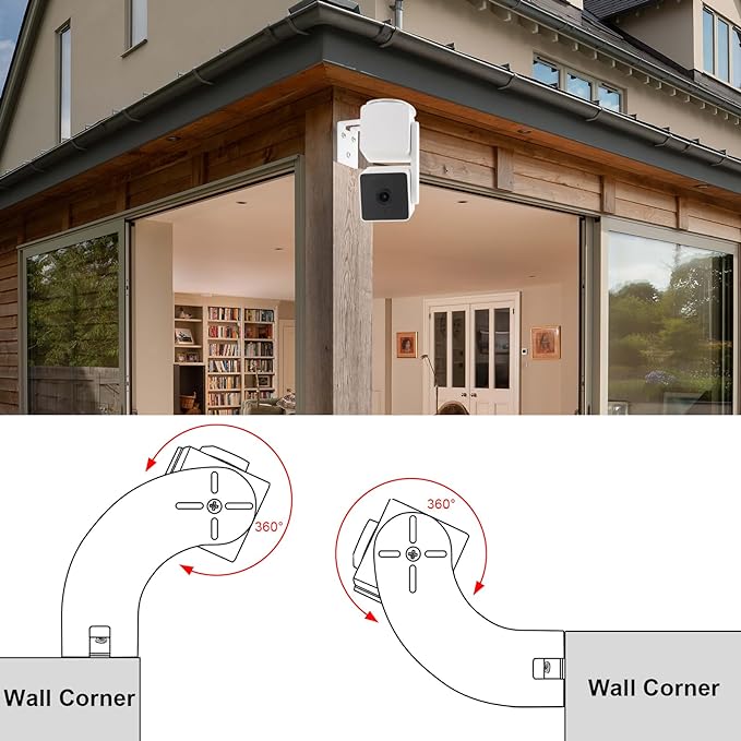 - Unique Design: The arc-shaped design allows your wyze pan V3 easy installation in wall corners, providing a 360° panoramic surveillance without blind spots.Made of durable metal material, our camera bracket ensures longevity and robustness.